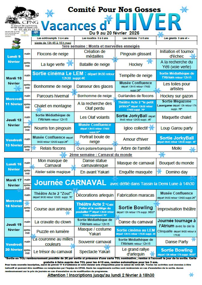 Le CPNG accueillera vos enfants du 9 au 20 février 2026 pour les vacances d'hiver.